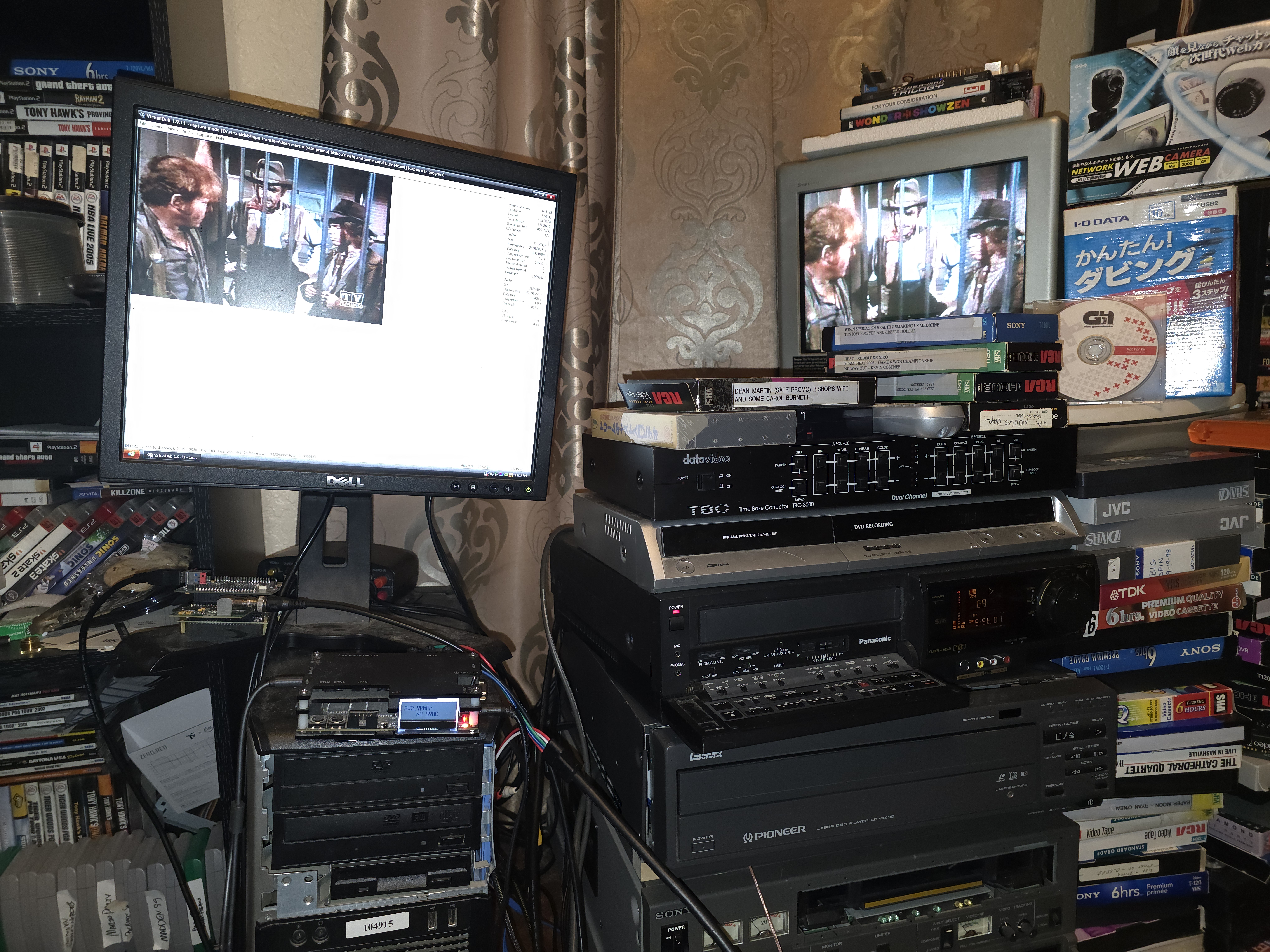 then there is the capture card. i use an io-data gv-usb2. i've had it since 2019 and it's worked quite well for me. it's gotten quite expensive recently, and there might be fakes being sold online, so be careful. other good capture card options are a dazzle dvc-100, hauppauge wintv pci cards (i have an hvr-1290 personally), the diamond vc-500, the hauppauge usb-live2, and that one ati all in wonder card that lordsmurf prefers that only works on xp. stay away from the elgato. stay away from easycraps.