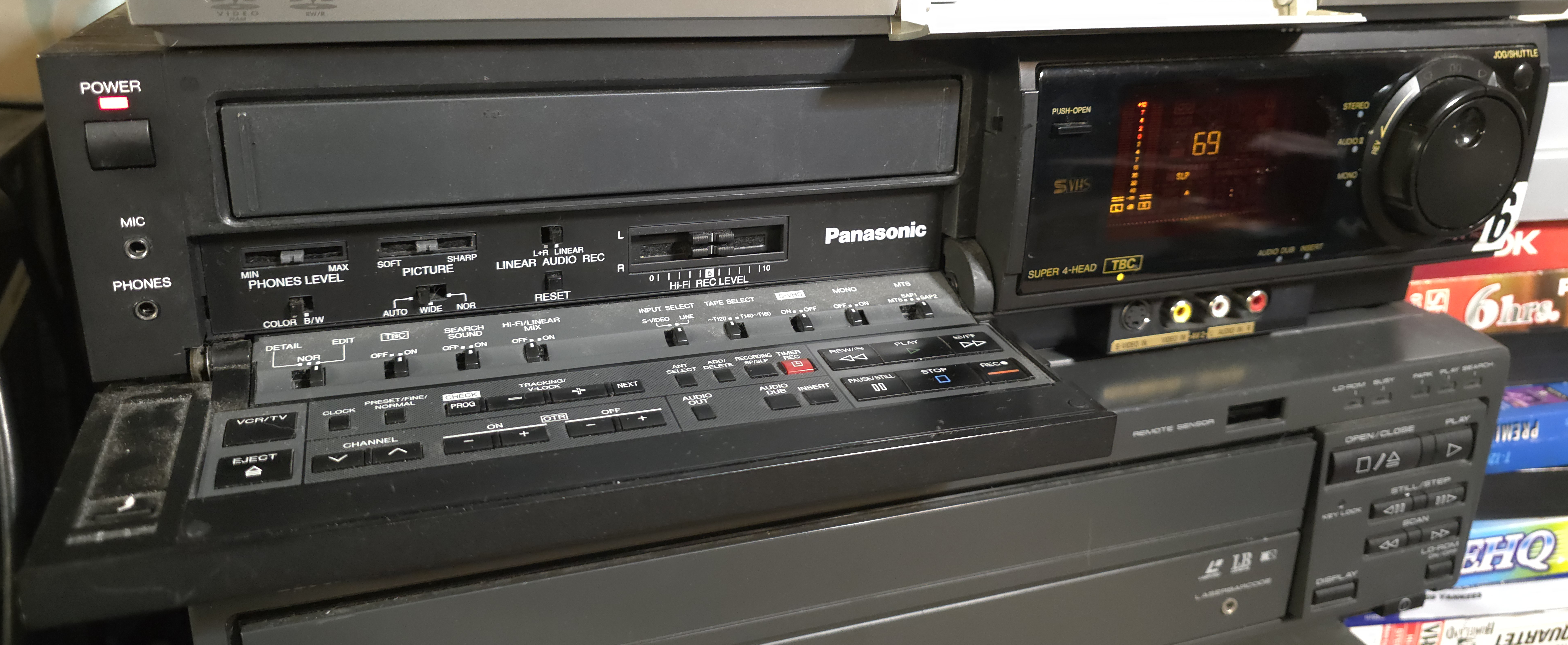 now to the setup itself. first off, the vcr itself. i have a panasonic ag-1980. i've been told it's probably one of the best vcr's ever made. the quality on this vcr is excellent. but getting one used can be an issue. the capacitors on this thing suck ass. they die pretty easily, so if you find this thing in the wild, it almost always needs a recapping. the guy i bought this vcr from recapped it himself (in fact, i was his first client for a recapped unit), and he did a good job with it. there are some other recapping services out there, namely deter on videohelp.com, but i don't have expierience with him. for the best results on this vcr, use s-video and set the picture mode to edit. i'll explain later.