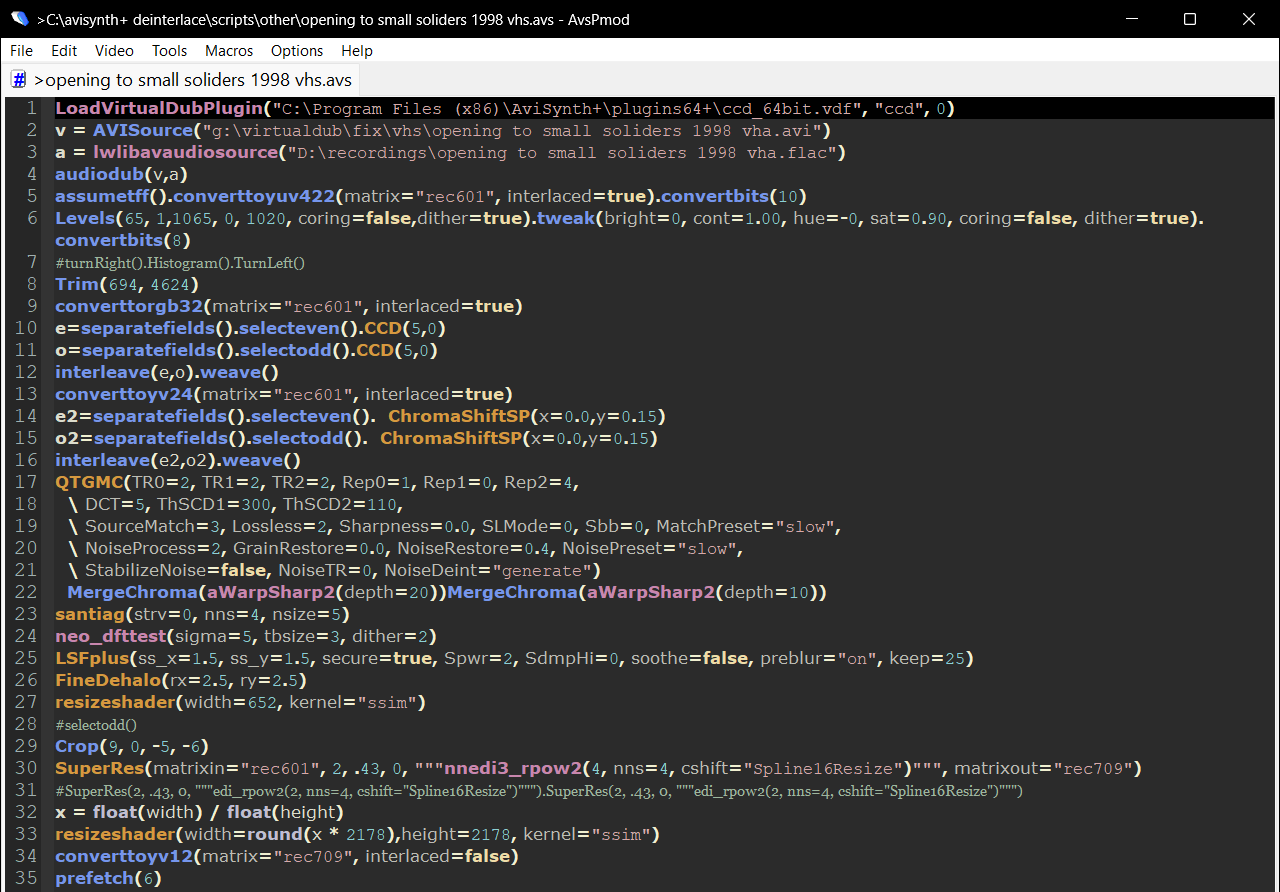then for my youtube uploads, i do my "secret sauce" if you will. i do deinteracing and cleanup.